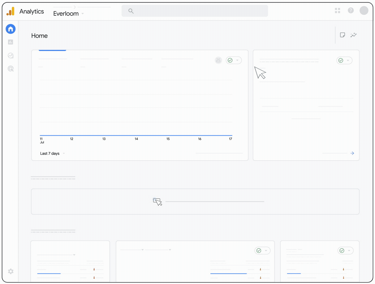 You can use the search to access information about your current property or account, and to navigate to the other Google Analytics properties you have access to.
