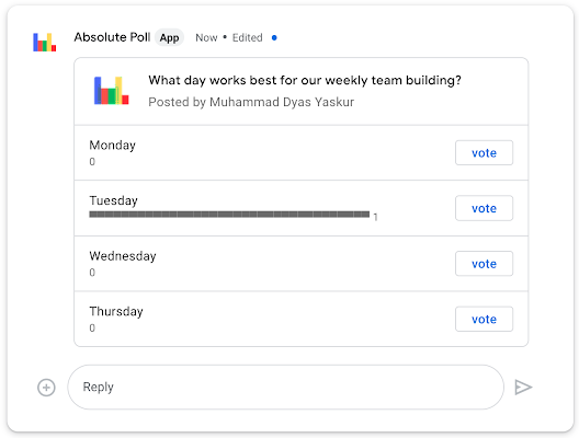 Absolute Poll is a productivity software that enables you to create polls, surveys, gather feedback, and make quick decisions within Chat. All members of your workspace can interact with the polls you create, allowing for a more collaborative and efficient decision-making process.