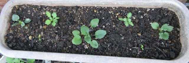 発芽後の苗をどんどん植え替え こぼれダネ発芽もあちこち確認