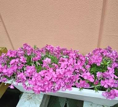 昨年、芝桜を3株長プランターに植えました。冬にはすっかり影を潜め、諦めておりました。ところが季節が変わるごと、少しづつ小さな芽が出てきました。そしてこのような立派な苗に育ち大満足しました。先日1日半も長いこと雨が降りました。せっかくいっぱいのお花が咲いているサフイニアレッドを長雨に当てるのは心配なのでビニールを被せました。雨に充てるよりはお花の被害が少なく済んで安心しました。サフニアブーケのお花が咲き進んできました。種まきが少し遅かったのです。まだこのように小さいです。