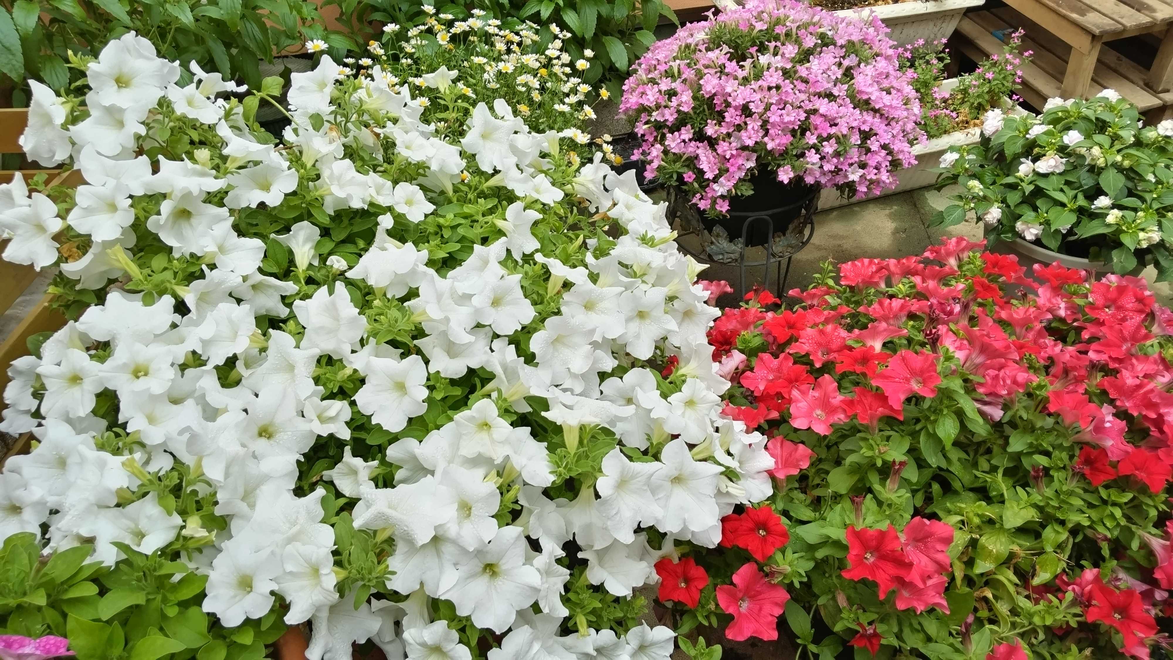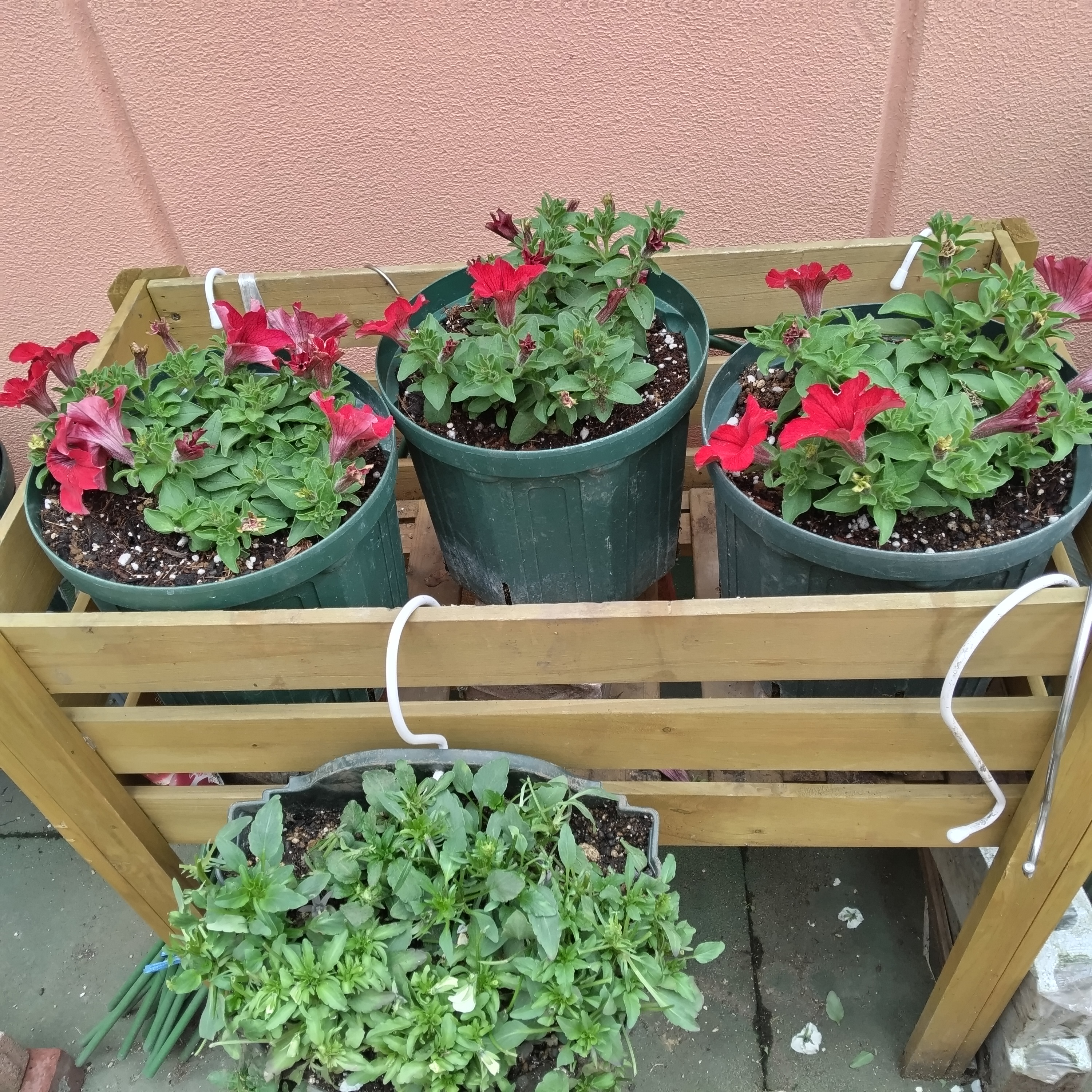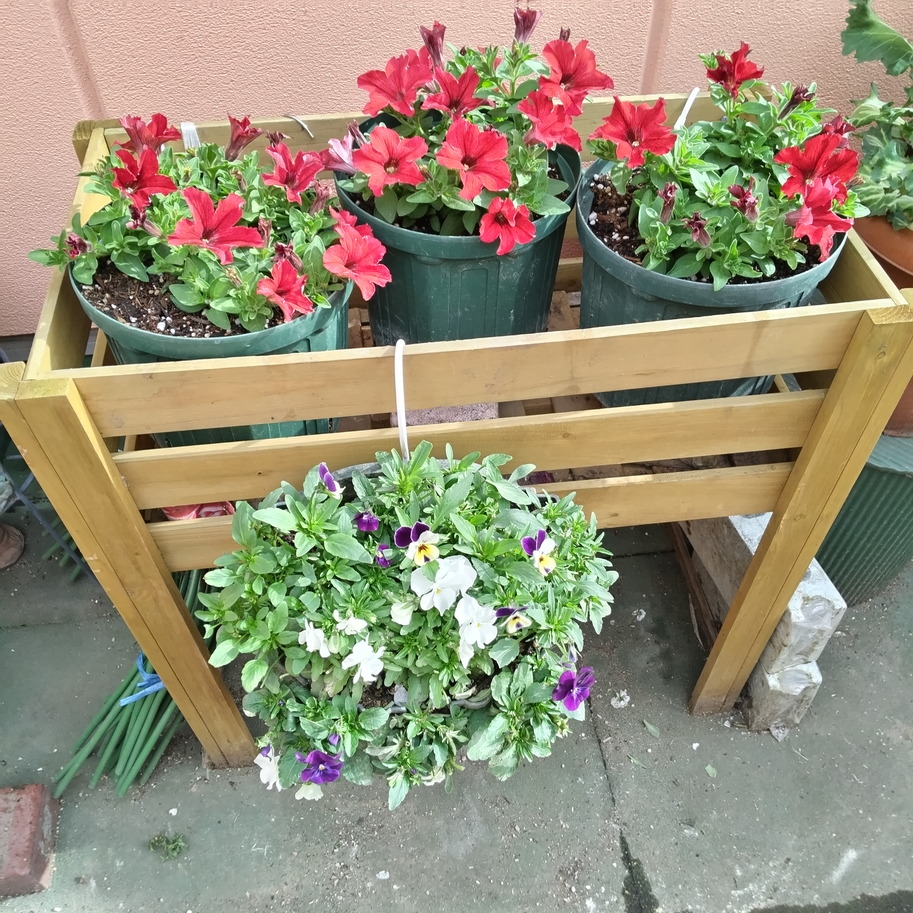 今年は天気が安定しないので、花たちの成長も良くありません。漸く、サフイニアのレッドパステルピンク、ダブルインパチェンスなどが咲いてきました。パステルピンクの葉が伸びて2株が間もなく合体ですね。賑やかなお花が咲くだろと思います。毎年、何十年も植えてきたピンクラッフルが売られていません。もう少し探してみたいですが、ダメでしょうか??ダブルインパチェンスの「アップルブロッサム」中心はもっとピンクになって綺麗なのですが。いつもとちょっと違います。今迄育てたことのないお花の色目です。日本ブログ村ランキング参加中です。にほんブログ村 いつもご訪問いただきありがとうございます。