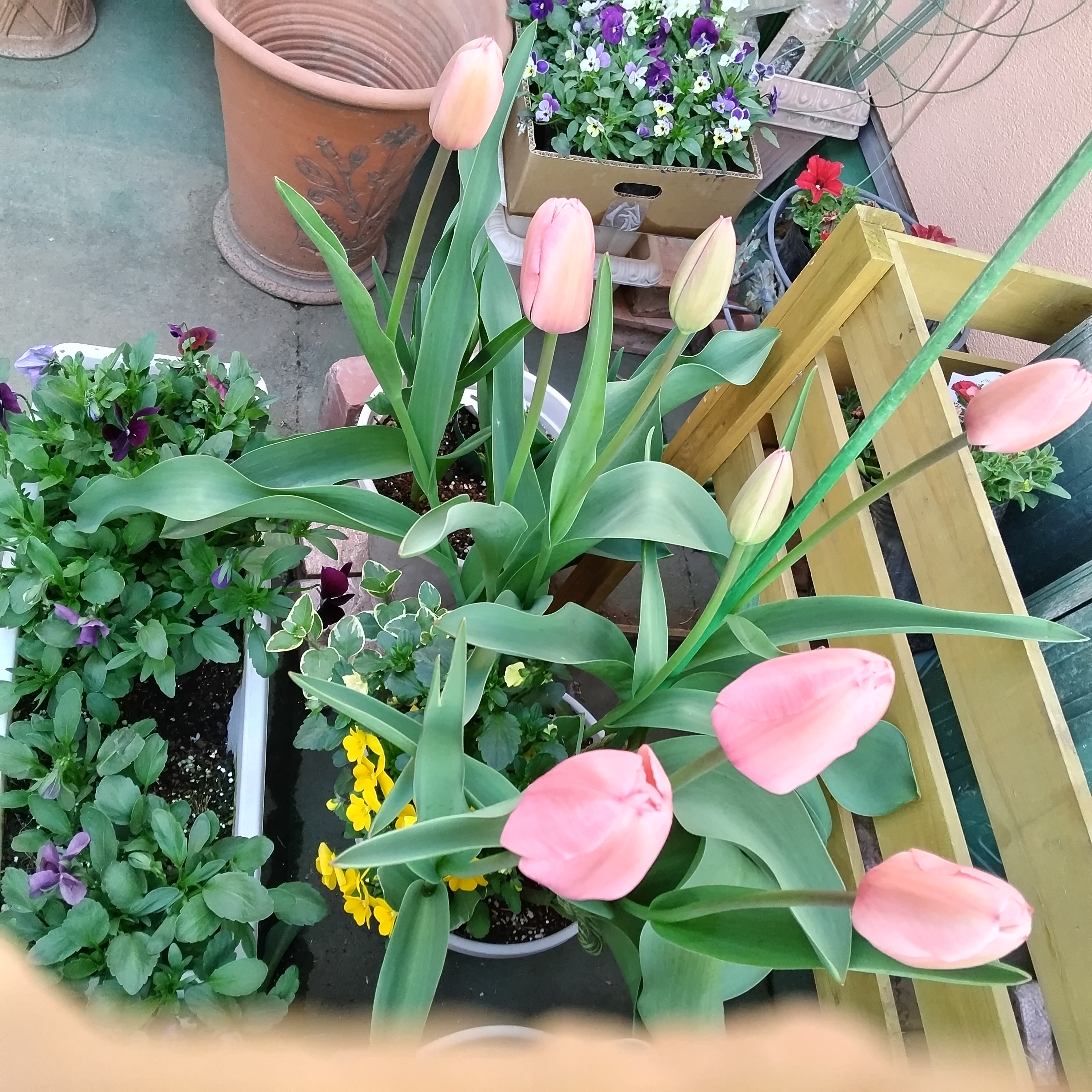 今日は暖かな嬉しい一日をスタート、でも残念なことに午後からは強い風が3階のベランダを暴れまわました。ベランダの壁に寄せてチューリップを移動しました。これで少し長持ちしてくれそうです。日本ブログ村ランキング参加中です。 にほんブログ村 いつもご訪問いただきありがとうございます。