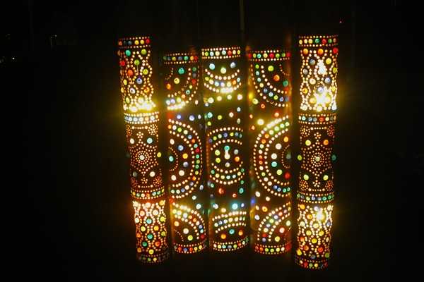 愛知県豊田市の三河上郷駅前のロータリーはこの季節になると綺麗なイルミネーションで飾られる。ここの作品は上郷中学校の生徒さん達の手作りだ。竹に穴を開けて反対側からライトで照らすとこうなる。木の板をうまく切り抜いて作った作品。いやあ、日本の伝統的な作品に見えるな。よくもまあこんなに細かい作品を作ったものだ。ロータリーの中心はこんな感じ。まるで虹色の富士山。そういえばこの三河上郷駅ではこんなことありました。捕まらなくてよかったよなあ。 ⇒ 【痴漢じゃないです】