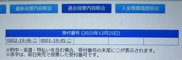 僕はお酒を飲まないしパチンコにも行かない。仕事が楽しいし刺激的なのでそれで充分なのだ。しかし、意外と思われるだろうが競馬を少しだけやる。競馬場に行くのではなくネットで馬券を買うってやつだ。この1週間で4日間、馬券を買ったんだけど今日はその戦果を公表してみようと思う。ちなみに一攫千金を目指しているのではないので一口100円で一発勝負という買い方である。予想する時に”勝つビジョン”が浮かばないレースは買わない。まず12月25日、2戦2勝。〇印が当たったレース。12月29日、6戦4勝。12月30日、2戦2勝。12月31日、7戦6勝。4日間合計で17レース買って的中は14レース。午前の早い時間のレースで3戦落としているがそのどれもが僅差で負けたというもの。まあ1口100円しか買わないから利益は大したことないけどこれだけの的中率なら”予想屋”の仕事もできるんでねえの?そして「これだけ当たるんなら1口千円や1万円賭けるか」という危ない欲はないのでコレで十分です。投資したお金が倍になってるんならそれで満足。万馬券を当てようとかは考えてない。そして「利益が出てるうちに切り上げる」、コレ重要です。世の中でギャンブルに狂って生活が苦しいだとかギャンブル依存症になるとかの人もいるし負け金額が増えて借金するだとかの人もいるけどビジョンが映像として浮かばない人はギャンブルしない方がいいです。