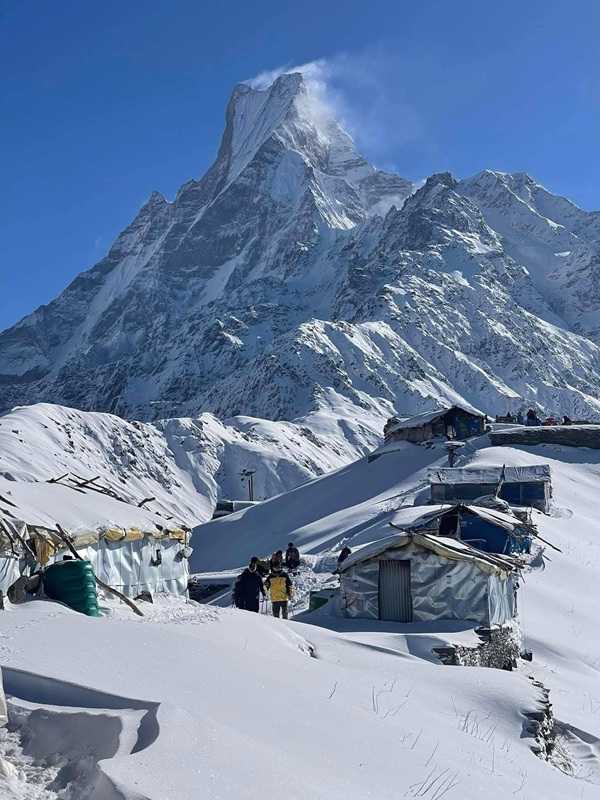 5月にネパールに行って色んな友達ができたけど今日はその内の1人から綺麗な写真が送られて来た。標高4100mの場所にティーショップを作って有名になり現在もそこに紅茶の葉を供給していて現地では有名人、通称「チヤ・カカ」氏からの写真だ。チヤ・カカを日本語に訳すと「チャイおじさん」となる。後方に聳えているのはマチャプチャレという山。宗教上の理由で登頂は禁止されている。そのマチャプチャレを仰ぎ見る場所に彼が作った茶屋がある。トレッカー達は標高3500mにある最終ロッジの「ハイキャンプ」に泊り深夜3時頃にロッジを出発してこの茶屋のあるビューポイントに向かう。ここで日の出を見て熱いチャイを飲むというのがこのエリアのトレッキングのクライマックスとなる。このマルディヒマールのトレッキング・エリアの名を広めたのがそのチヤ・カカ氏で、このエリアの最大の観光誘致功労者といわれている。現在チヤ・カカ氏はこの4100mの茶屋を別の人達の経営に譲り、自分は麓の【1泊1000円の安ホテル】を経営する傍らで今でも4100mの茶屋に自家製の紅茶の葉を供給している。僕が5月にここに行った時もここで熱いチャイを飲み、ここから更に標高を上げた「マルディヒマール・ベースキャンプ」まで足を延ばしてハイキングに行ってきた。マルディヒマールB.Cは標高4500mなのでこの写真の上の方まで登ってきたのだった。また行きたいなあ。今度はベースキャンプじゃなくてもう少し上まで行ってみたいな。