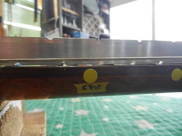 ●5フレットで5ミリ順ゾリが有りますと、サドルで弦高を下げても弾き難さは解消しません