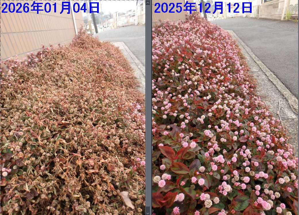 サザンカ2色、オオカナメモチ、ジュウガツザクラ、タイキンギク、ロ…