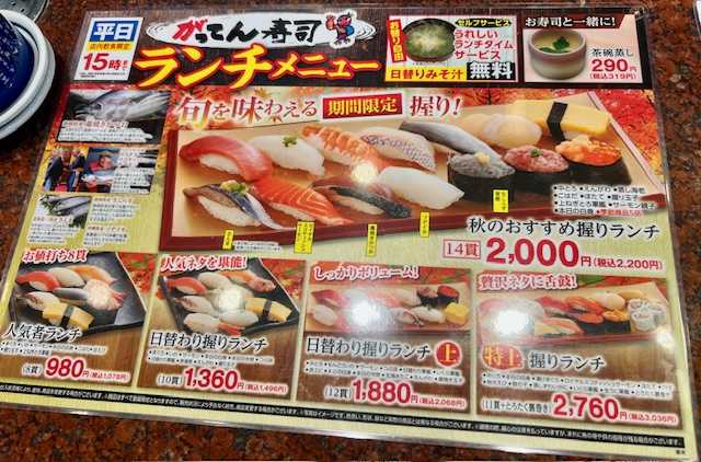 がってん寿司で遅めのランチ。また特上握りランチにしようかと思った…