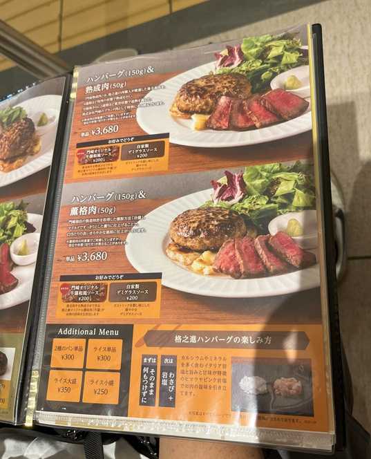 格之進 ハンバーグ&バルで、ハンバーグ(150g)&薫格肉を頼みました。