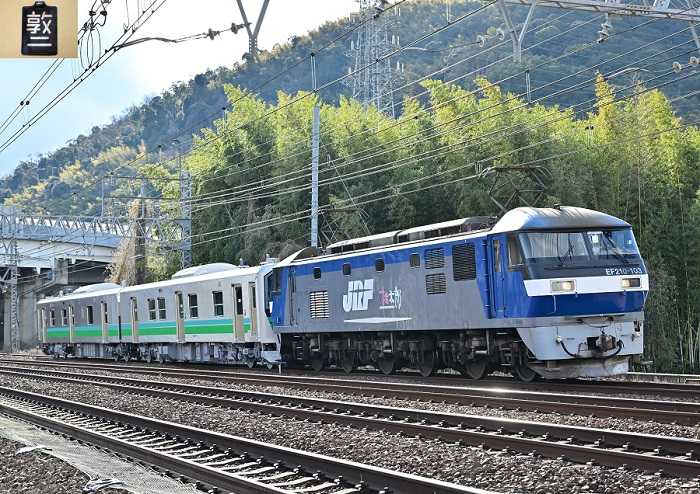 EF210-103 9866レ HB-E220系甲種輸送 2026.01.28(水) 山崎ー長岡京 佃踏切NikonZ9 Z24-120mm/f4曇り空でしたが直前に晴れて逆光沈没・・・
