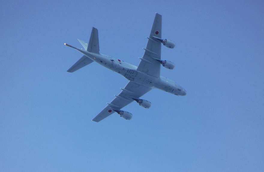見上げると今度はもっと低く自衛隊機。