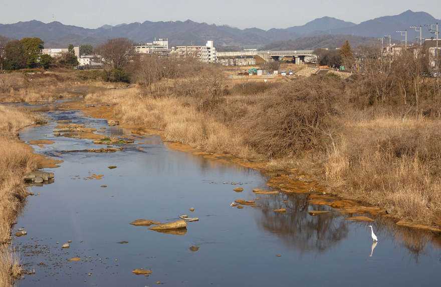 07:11、南浅川を上がって下って来て東横山橋から見下ろしてアオサギ。