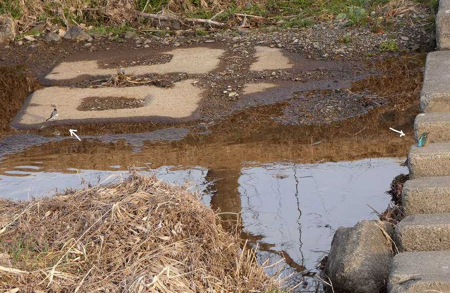 07:22、五月橋魚道にセキレイとカワセミ。