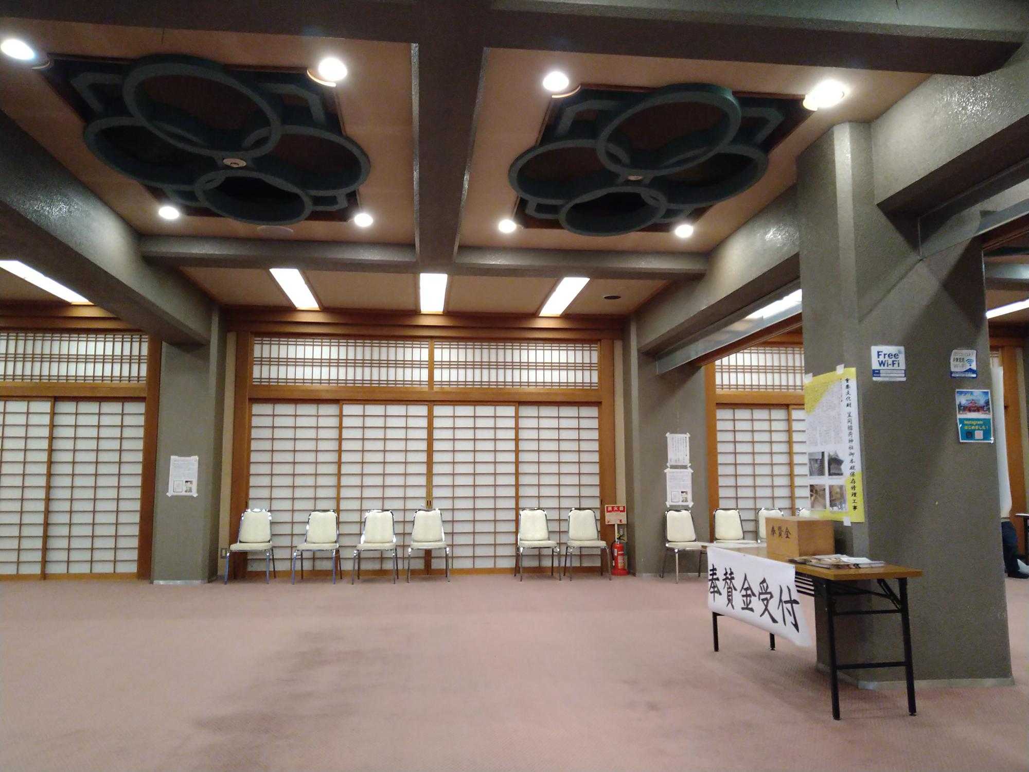 現在、笠間稲荷神社は重要文化財の本殿を修復中で、拝殿から本殿への通路が封鎖されています。そのためおそらくご神体は拝殿に移されているのではと思われます。拝殿内は撮影禁止のため画像はありません。