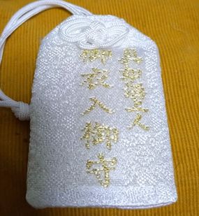 上人の白衣や袈裟は6年ごとに新調(衣替え)されるそうです。その際に、それまで着ておられた衣を細かく切って入れたお守りが、上人の前に置かれて販売されています。ありがたくいただきました。