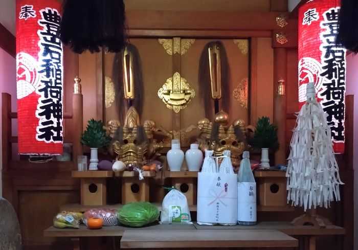 資生堂の繁栄・発展を支援する、正式名称は 満金龍神成功稲荷 。ダキニ天尊や龍神様を習合しているようです。