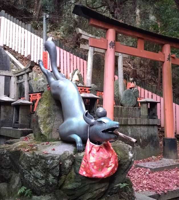 眼力社の狛狐さん。稲荷山を滑空するようすをイメージしているそうです。