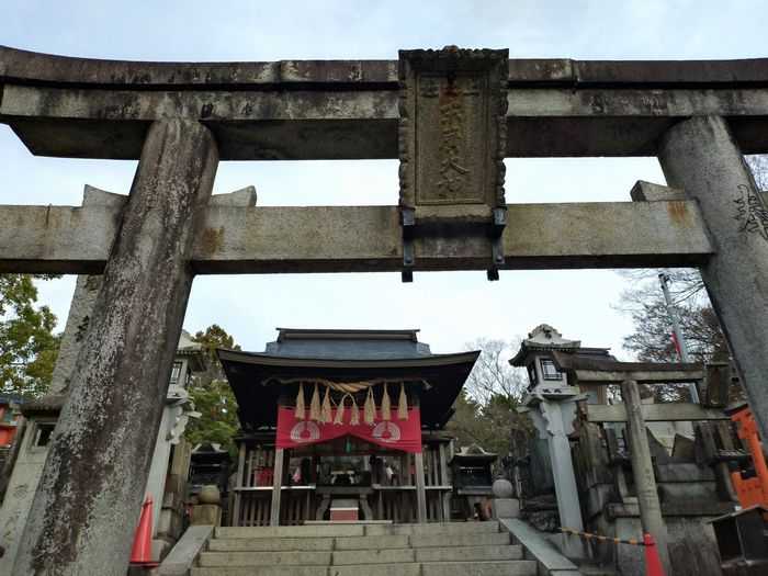 稲荷山は右回りで。まずは眼力社にお参りします。ここの狛狐さんの格好はいつ見てもダイナミックでユニークです。