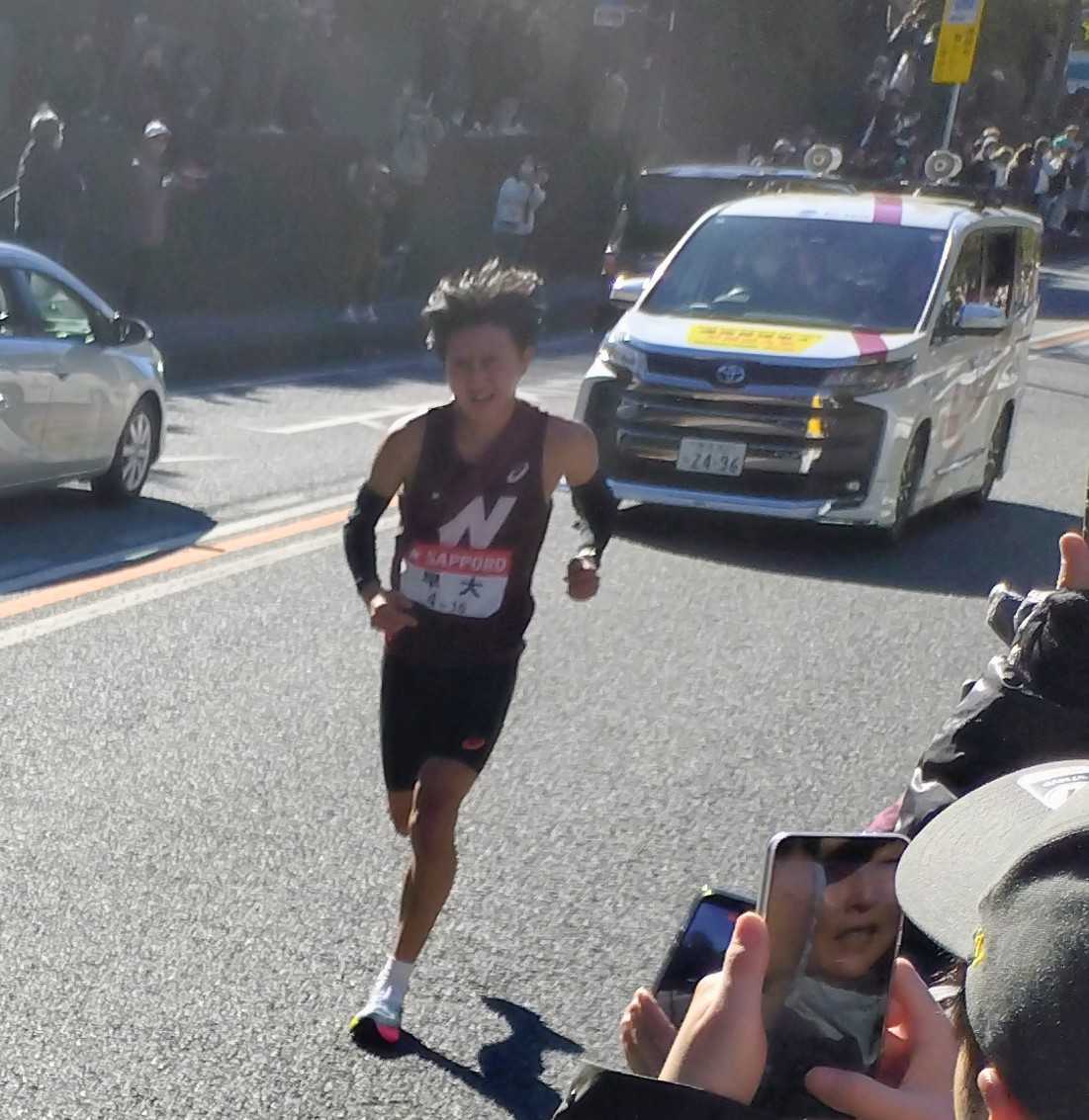 友人SKさんと箱根駅伝の復路を見てきました。観戦場所は、神奈川県 藤沢 市、 遊行寺の坂 です。8区になります。 SKさんは3度目、私M-65は初めての現地観戦です。沿道は応援の人でびっしり。この時期にしては気温は少し高めで風もほとんどありません。