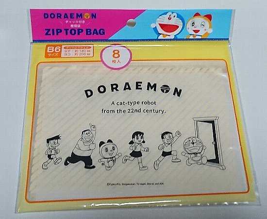 12月2日はドラミちゃんの誕生日。2114年12月2日なので-92歳か。ドラミちゃんに描かれているグッズの紹介。100均でみつけた「ドラえもん チャック付き整理袋」B6サイズ、8枚。ダイソー。