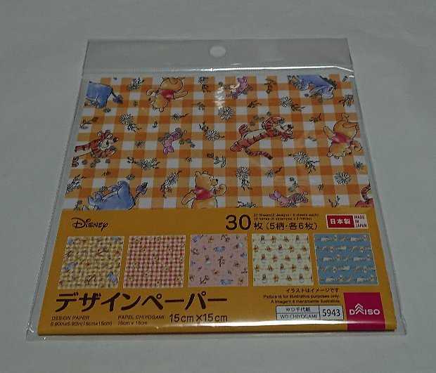 12月20日はくまのプーさんのキャラクターのティガーとピグレットの誕生日。100均でみつけた「デザインペーパー くまのプーさん」ダイソー。5柄×6枚で30枚入り。