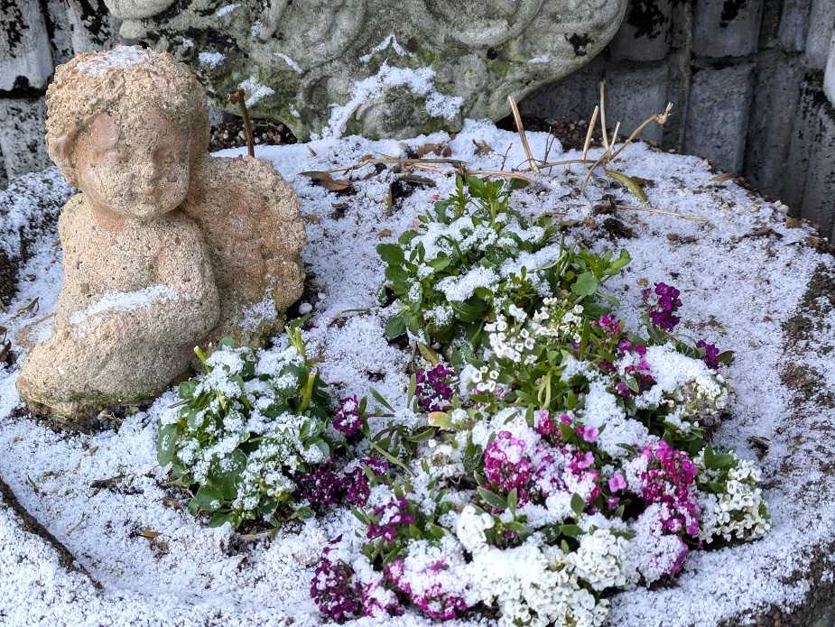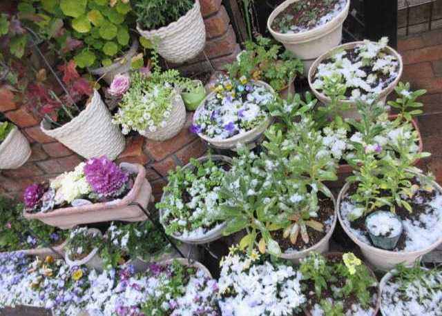 雪が!大阪でこんなに降るなんて!お花達が大変!