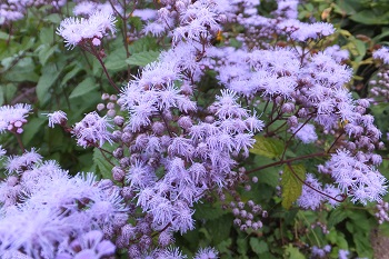 今宿根草で困っているのは、白絹病です。白絹病というのは名前はきれいですが、実にやっかいなものです、ユーパトリウム・コレエスティナムは9月頃アゲラタムのような白や紫の花が咲きます。、タネとランナーでどんどんふえていきます。4~5年経った頃急に枯れてきます。株本をみると白い菌糸が網状にはっていて、ひどくなると褐色の粟粒のようなものが現れます。 ユーパトリウム・コレエスティナム白絹病に侵されて枯れたものこの他に、ミヤコワスレ、ギボウシ、ダリア、アイリス、ジニア、グラジオラス、デルフィニュウム、ハナダイコンなどが特にかかりやすい。 枯れたデルフィニュウム株元に白い菌糸が網目状に広がる掘り取ると根が腐れている。白や褐色の菌核 白絹病に侵されたプルモナリア対策は病気にかかった株は早く抜き取り焼却する。菌核は地表から地下5センチぐらいまでのところにいるので汚染された土を5センチ以上取り去り、地下10センチ以上深い所は埋める。天地返しが有効。酸性土壌に多発するので石灰を施用する。未熟の堆肥を施用しない。風通しを良くして株間を充分に開ける。発生の初期にリゾレックス水和剤1週間おきに丁寧に散布する。。