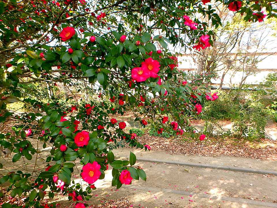 咲いている花はサザンカばかり。葉を落としたケヤキの大木やイチョウ並木もそれなりに趣がありました。