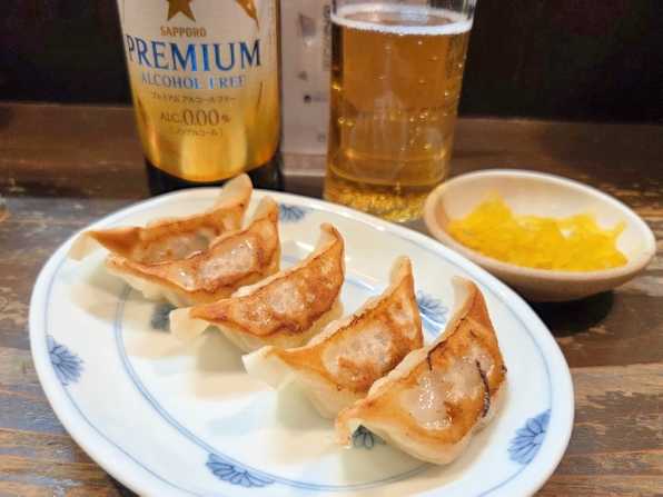 まずノンアルビールが出てきて、そして約5分で"一口ギョウザ"ができあがり、、、一口なのでパクパクと、ギョウザを食べながら待つことさらに約3分、"味噌風とんこつラーメン"のできあがりです。。。