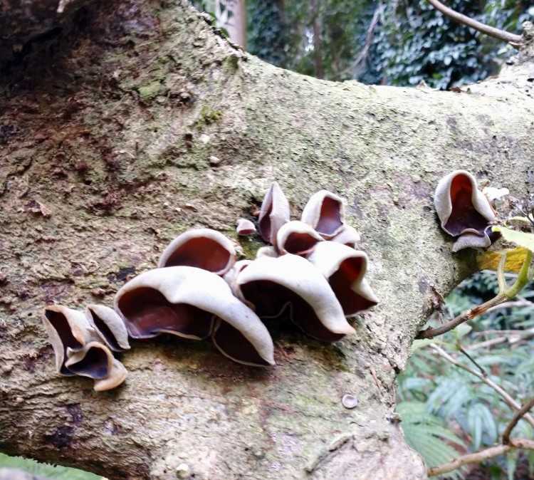 小さなせせらぎに向かって倒れ込んだ木には、ムキタケが沢山。 前日が雨だったせいか…
