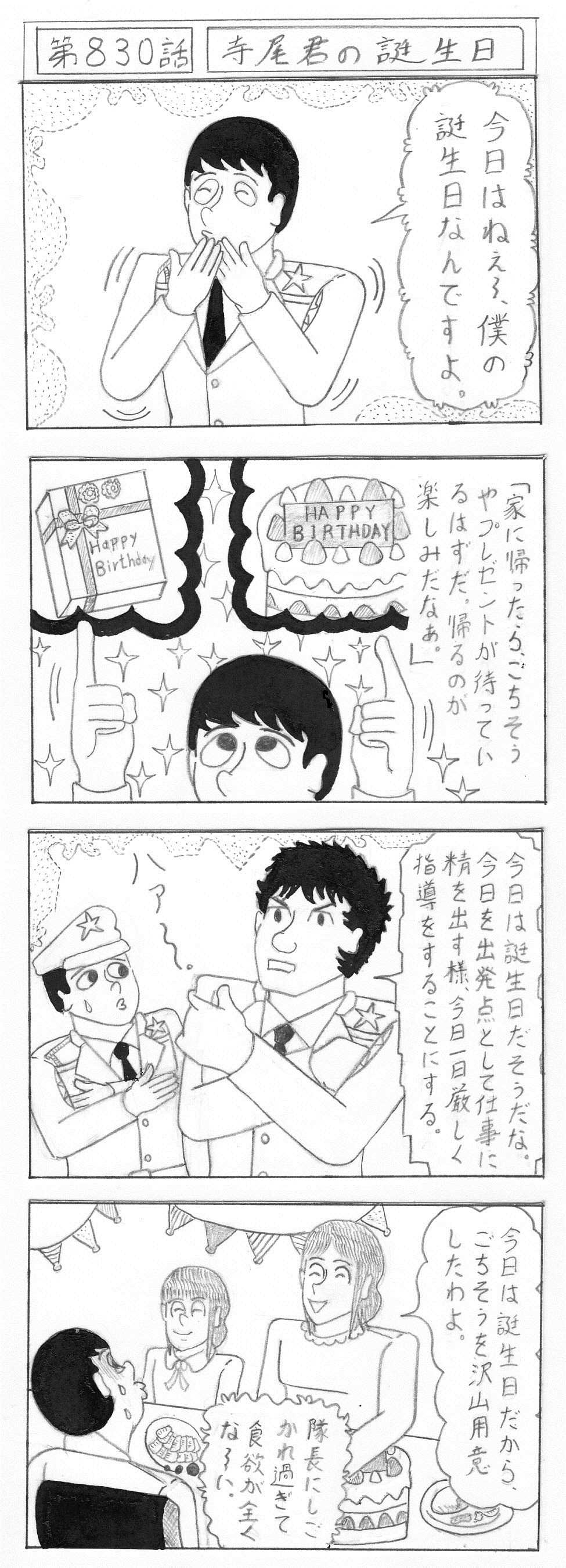 本日も「隊長と寺尾君」をご覧になって頂きまして、誠に有難うございます。 隊長の寺尾君に対する愛のムチも、寺尾君にとっては迷惑千万だったのでしょうね。 次回の更新日は1月9日(金)を予定しておりますので、よろしくお願い致します。