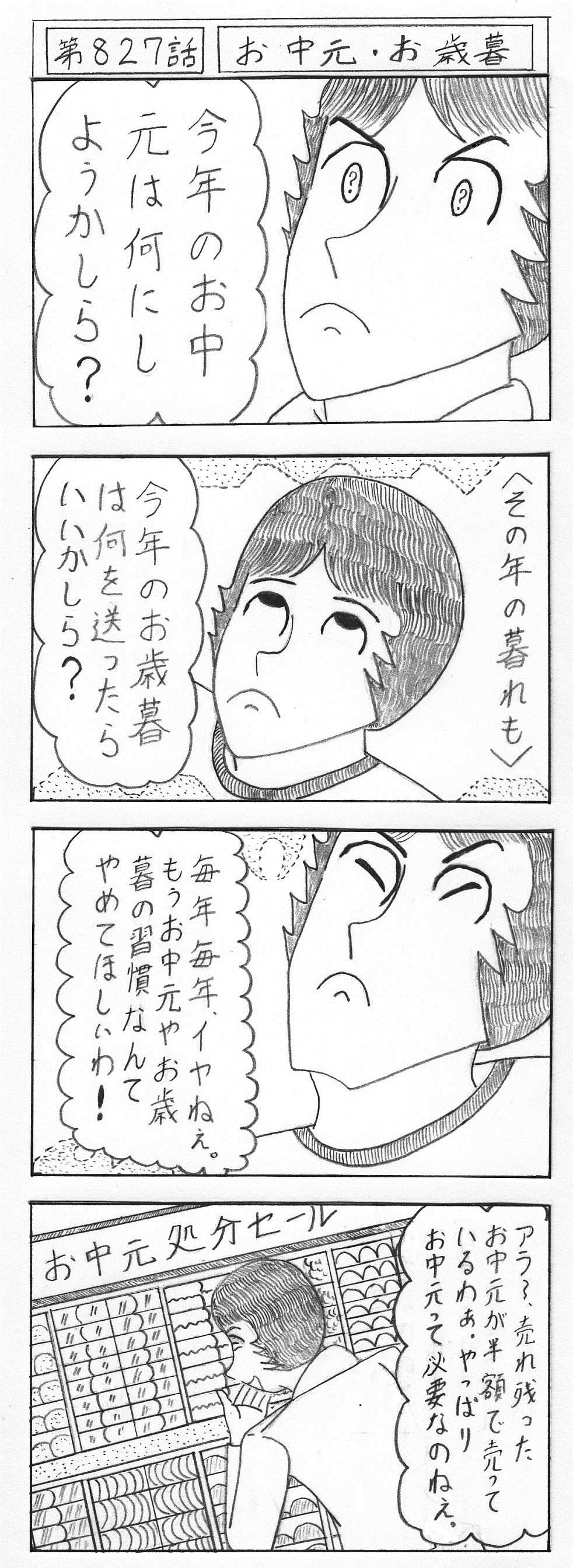 本日も「隊長と寺尾君」をご覧になって頂きまして、誠に有難うございます。 最近は以前ほどお中元やお歳暮を送る習慣が減ったようですが、まだこういう 習慣は根強く残っているようですね。 我が家は仕事を辞めてからめっきりお中元やお歳暮が減りましたね。 次回の更新日は12月29日(月)を予定しておりますので、よろしくお願い致します。