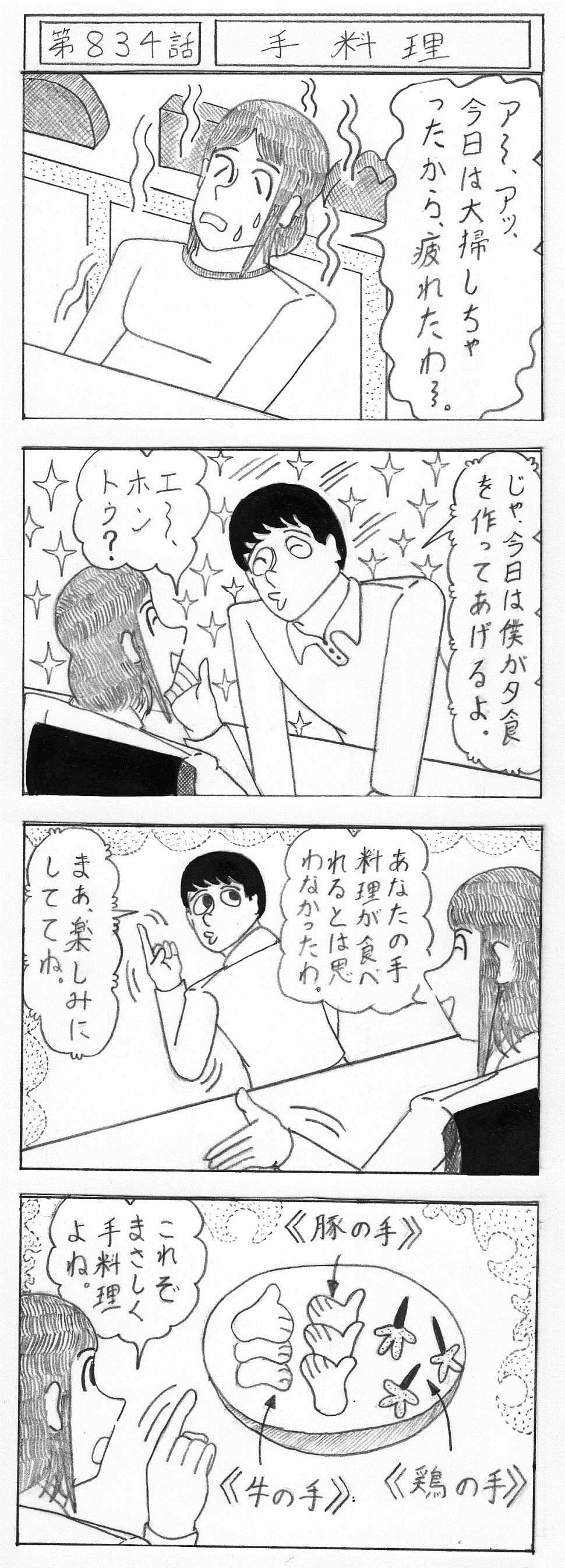 本日も「隊長と寺尾君」をご覧になって頂きまして、誠に有難うございます。 手料理の次は今度は足料理を作ってみるのもいいかもしれませんね。 尚、今日は朝早くに出掛けて夜遅くに帰って来る関係上、みなさんから頂いたコメントの 返事は明日になってしまうと思いますので、誠に申し訳ありませんが、よろしくご了承の程 お願い申し上げます。 次回の更新日は1月16日(金)を予定しておりますので、よろしくお願い致します。