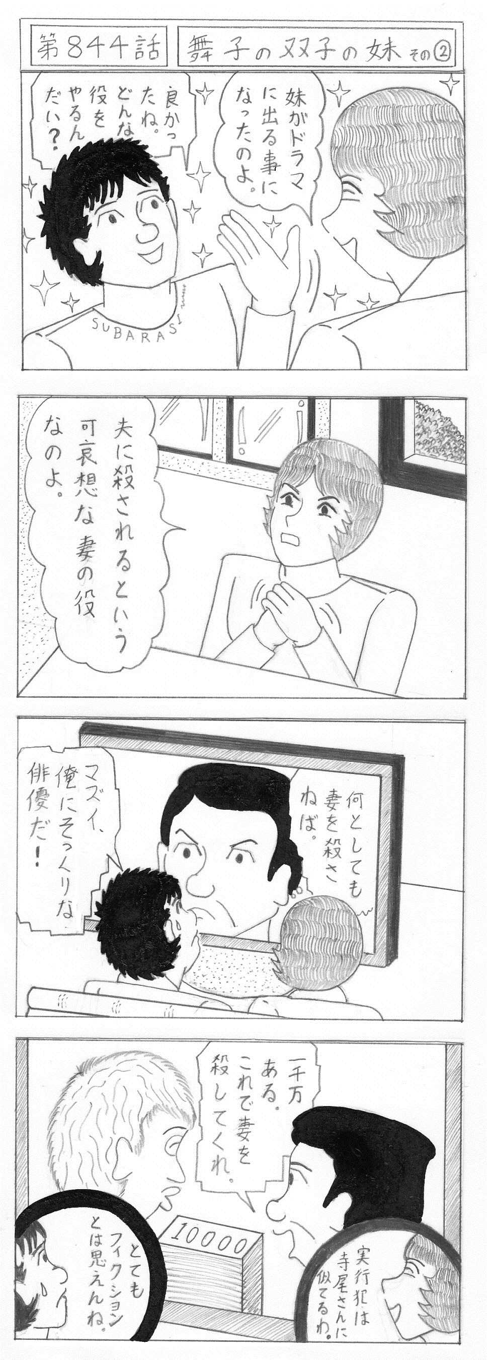本日も「隊長と寺尾君」をご覧になって頂きまして、誠に有難うございます。 舞子さんの妹が出演するドラマでは隊長や寺尾君に似た俳優が出演するようですね。 いっそのこと隊長と寺尾君が顔の似た俳優に代わって出演した方が面白いでしょうね。 次回の更新日は2月11日(水)を予定しておりますので、よろしくお願い致します。