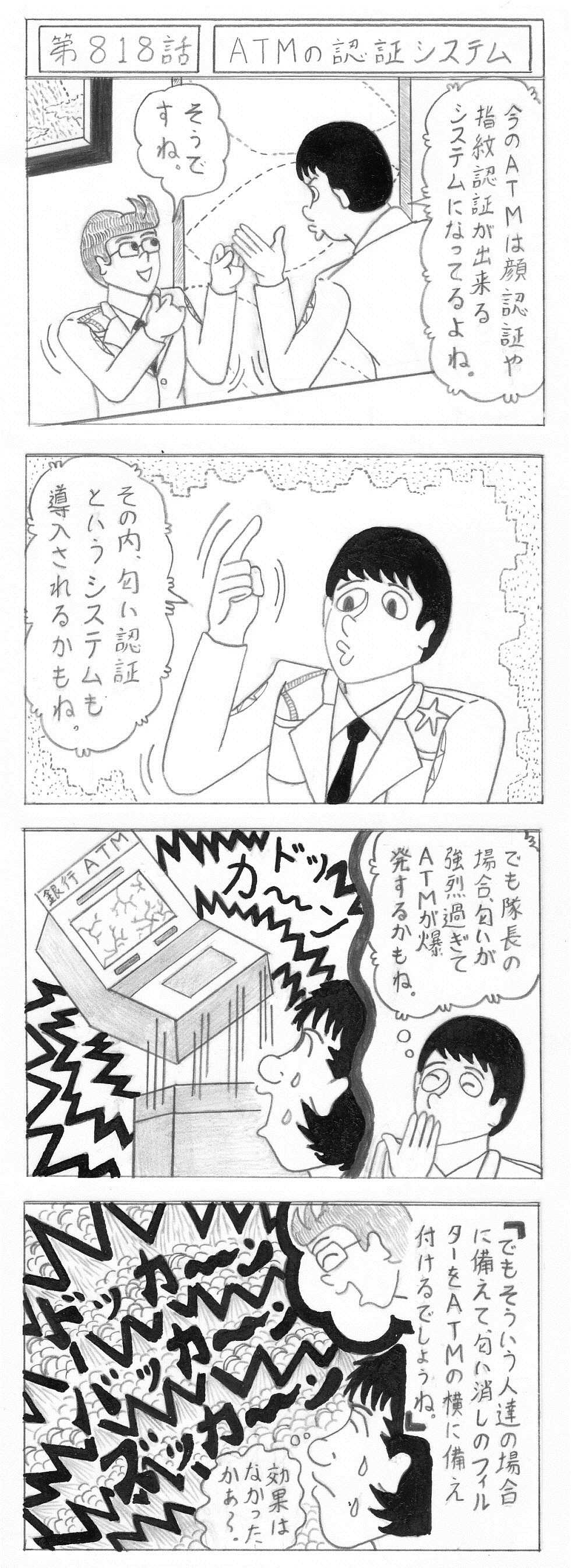 本日も「隊長と寺尾君」をご覧になって頂きまして、誠に有難うございます。 ATMの機械を壊してしまうほど隊長の匂いは強烈なのですね。 やはり前世がスカンクだっただけありますね。 次回の更新日は12月8日(月)を予定しておりますので、よろしくお願い致します。