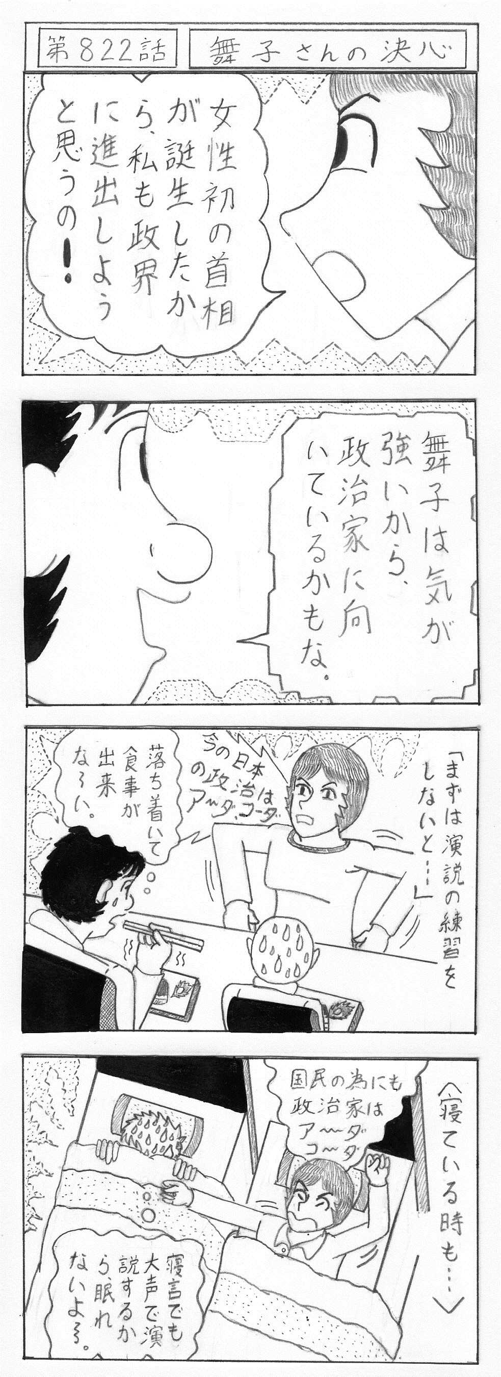 本日も「隊長と寺尾君」をご覧になって頂きまして、誠に有難うございます。 舞子さんは人間がクリーンなので政治家には向いていないようですね。 私も同じようにクリーンな人間なので政治家にはなれないでしょうね。 次回の更新日は12月19日(金)を予定しておりますので、よろしくお願い致します。