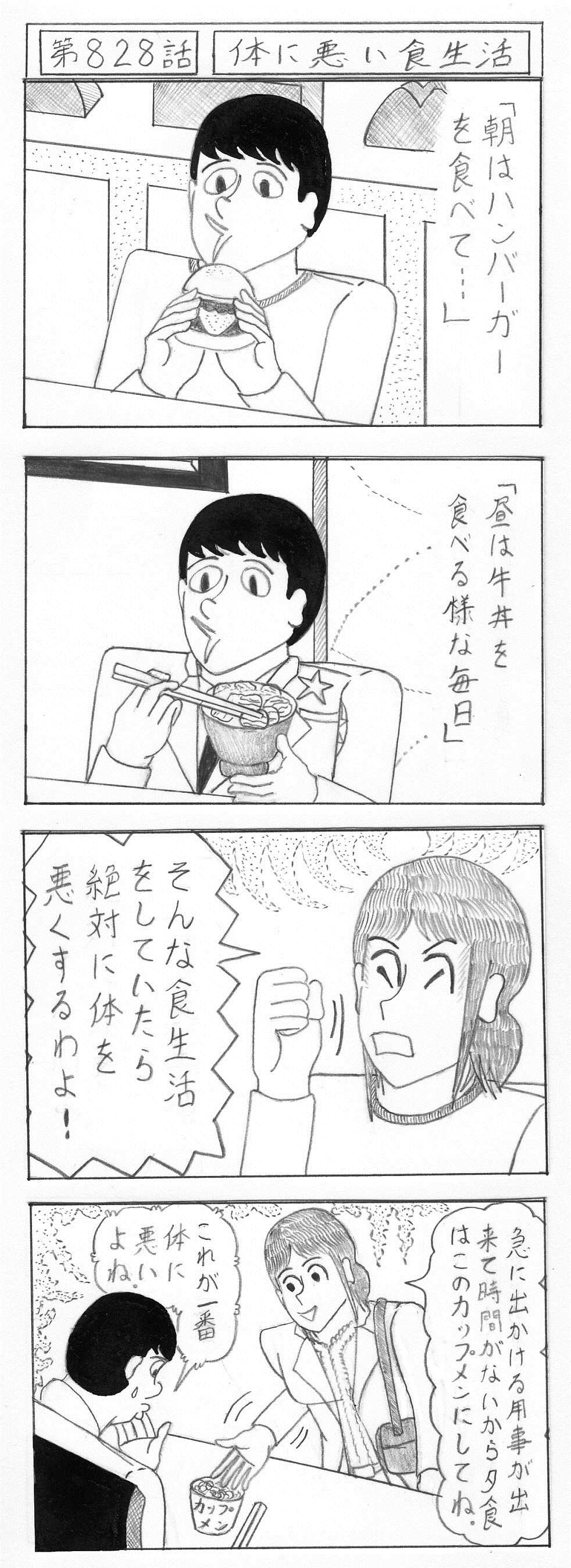 本日も「隊長と寺尾君」をご覧になって頂きまして、誠に有難うございます。 結局の所、寺尾君は体に良い食生活は出来ない様になっているのですね。 誠に申し訳ありませんが、12月31日(水)、1月2日(金)は都合により休載 させて頂きます。 今年も一年間本当にお世話になりました。 来年もどうかよろしくお願い致します。 読者のみなさまもどうか良いお年をお迎え下さい。