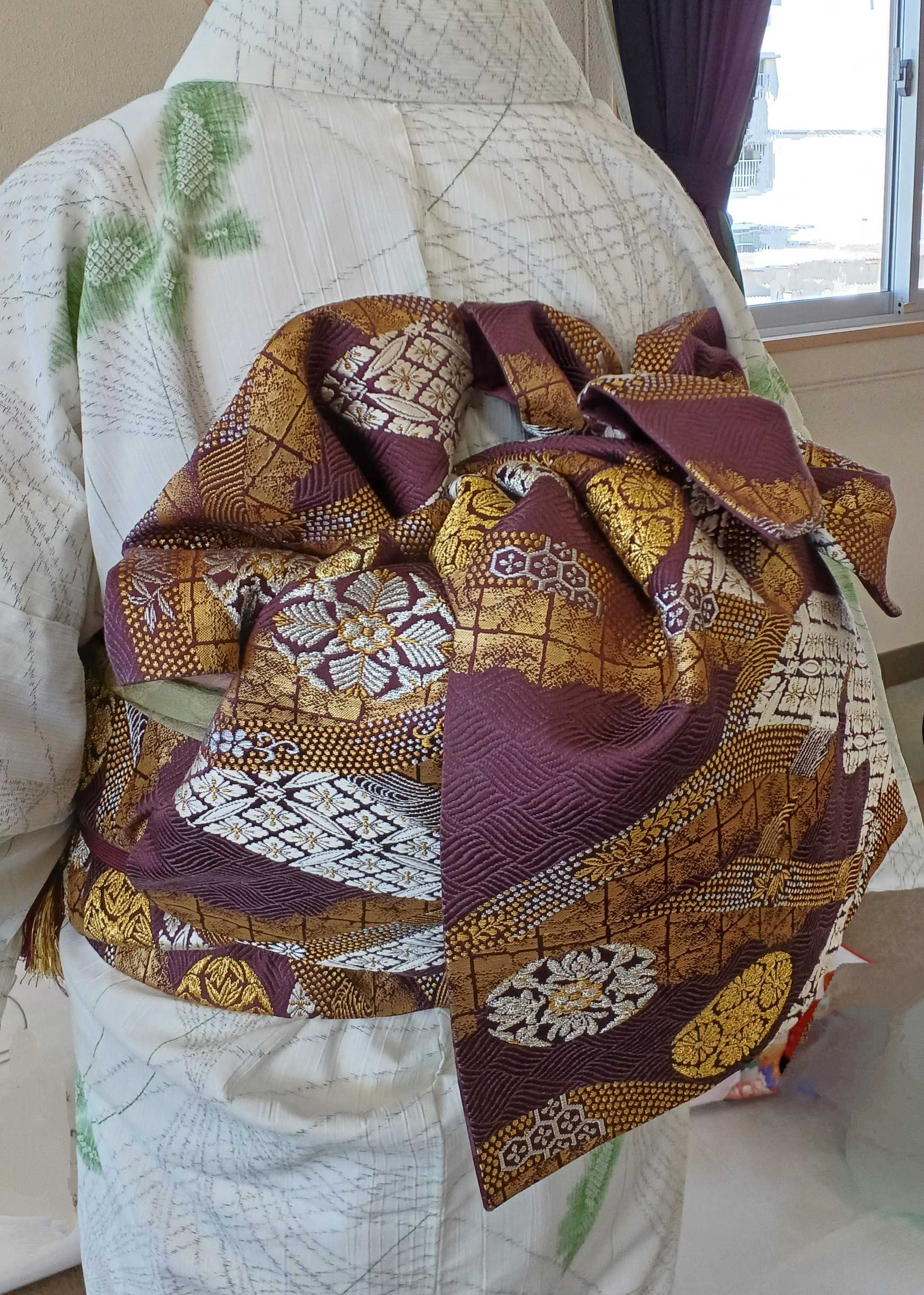 文化祭の帯結び、お相手がお休みだったので自分の帯を使ってボディで練習