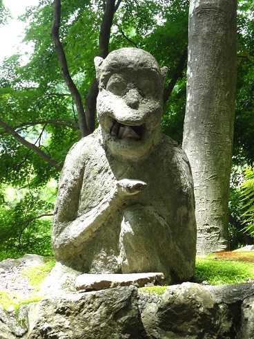 にほんブログ村 愛知県犬山市の桃太郎神社に高見彰七作品がある。この情報を見つけた時、私は本当に驚きました。桃太郎神社には、浅野祥雲作以外のコンクリート像もある。この件は、私も以前にブログでご紹介しました。【以前の記事】 「桃太郎神社の浅野祥雲以外の作品] しかし、まさかこの内の5件が製作年も裏付けのある高見彰七作品とは予想もしていませんでした。情報については、犬山日本一桃太郎会の方に確認して、神社関係者のメモ書きながら、記録があることを確認しています。今回、高見彰七作品と確認できた作品。まずは次の作品があります。【 リンク集3 (No.10) 悪運はサル 】 ・所在地: 愛知県犬山市 桃太郎神社 ・設置年: 1962年(昭和37年) ・作家銘: なし(メモ書きで裏付け) ・情報元: 犬山日本一桃太郎会桃太郎神社でも、特に印象的な「悪運はサル」。あまりにダイナミックな作風は、これが高見彰七作品かの判定さえも困難とさせます。桃太郎神社に浅野祥雲と高見彰七両氏の作品があることは重要な意味を持つと思います。少なくとも、両氏がともに桃太郎神社に作品を設置していた1962~1970年には、両氏に交流があったことは間違いありません。以前から、浅野祥雲,高見彰七の両氏の交流を推定させる事例はいくつかありました。今回の桃太郎神社での発見は、両氏の交流を裏付ける点で私にとってはとても大きな発見となりました。【犬山日本一桃太郎会のNote】 「桃太郎神社のコンクリート像」【 ARABIA フィギュリン 】 < ↓ ランキングクリックはこちらから > にほんブログ村