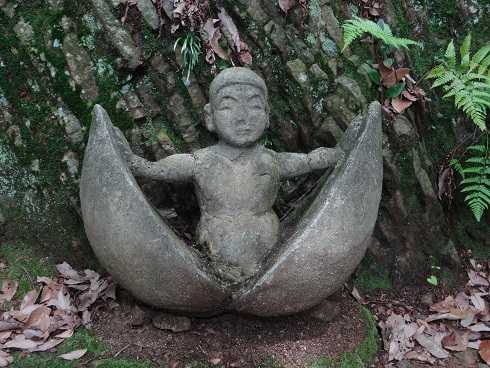 にほんブログ村 桃太郎神社の高見彰七作品、第3件目です。本神社からの高見彰七作品の登録は、本神社神主ご子息の当時のメモ書きの情報に基づいています。今回は桃太郎神社の高見彰七作品で、最も見落としやすい作品です。【 リンク集3 (No.12) 桃太郎誕生 】 ・所在地: 愛知県犬山市 桃太郎神社 ・設置年: 1962年(昭和37年) ・作家銘: なし(メモ書きで裏付け) ・情報元: 犬山日本一桃太郎会この作品は、拝殿の向かって左奥にあります。拝殿より奥に進まないと見ることができません。しかも未塗装で小さな作品です。この作品は豊田市 観音院の座像と表情がよく似ています。「観音院の座像」観音院の座像が高見彰七作品であるという裏付けにもなるでしょう。高見彰七作品らしい素朴な座像です。【犬山日本一桃太郎会のNote】 「桃太郎神社のコンクリート像【 ヘレンド フィギュリン 】 < ↓ ランキングクリックはこちらから > にほんブログ村