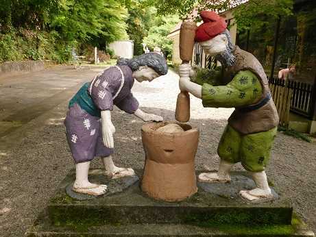 にほんブログ村 桃太郎神社の高見彰七作品、第2件目です。この神社の高見彰七作品で、最も製作の難易度が高かったであろう作品。それがこちらです。【 リンク集3 (No.11) 餅つき 】 ・所在地: 愛知県犬山市 桃太郎神社 ・設置年: 1962年(昭和37年) ・作家銘: なし(メモ書きで裏付け) ・情報元: 犬山日本一桃太郎会神社内の有料ゾーン入り口にある餅つきの像は、参拝者は誰もが目にすることでしょう。どちらかと言えば破損を恐れて保守的な造形が多い高見彰七作品。その点、この餅つきはかなり意欲的な作品です。前かがみの姿勢も造形が難しく思えます。杵が頭に付いているのは補強の意味もあるでしょう。塗装されいることもあり、高見彰七作品の特徴が把握できません。根拠となる記録がなければ、作家の特定は難しかったことでしょう。塗装がコンクリート像の印象を変えることを、あらためてこの作品で実感しました。【犬山日本一桃太郎会のNote】 「桃太郎神社のコンクリート像」【 ヘレンド フィギュリン 】 < ↓ ランキングクリックはこちらから > にほんブログ村
