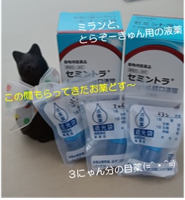 夜は錠剤と目薬の他に、液薬を服用してもらいます。