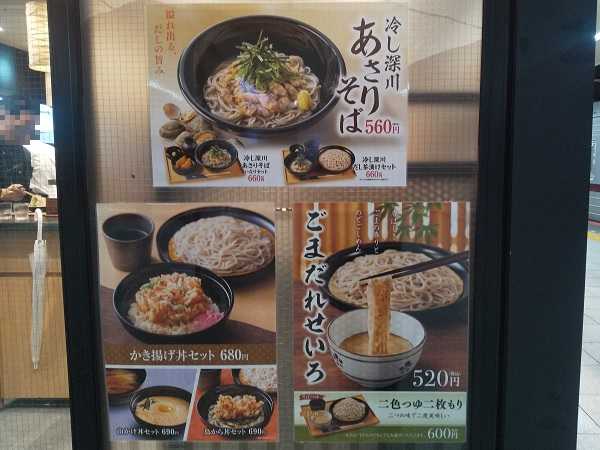 店頭に こちらも何度か食べていて、いずれ どこかの店で食べる予定の『冷し深川あさりそば』。