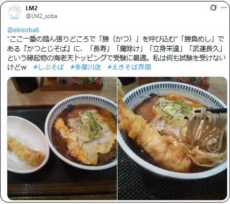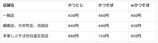 期間限定商品で、『かつとじそば』に関しては二子玉川店と池上店では取り扱っていない。
