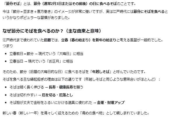 今日(2月3日)は節分。 となれば、「節分そば」だ生成AI(Grok先生)の説明そう、「節分そば」として食べるそばは なんでもいいのでもね、できれば「節分」を謳った品名であったり、イメージするものがいいよね。【小木曽製粉所】さんや【吹上庵】さんで期間限定で提供してるんだけど、遠くて無理一方、既存の商品を「節分」に無理やり関連付けている店もある。【富士そば】さんだ。今年は、これでいいや去年いただいた『日清のどん兵衛紅生姜天そば』も似たようなもんだしね ということで日暮里の店へ ここは初訪の店だ【名代 富士そば 日暮里店】 荒川区東日暮里5-52-2 神谷ビル1F ホームページ、facebook、X店頭では以前から販売している『肉骨茶そば』推し。下の方に「興和物産」の番重が見える。こちらは よくわからん 入店して券売機。事前に店頭のショーウインドーで『紅生姜天そば』があるのは確認済み。券売機の下のほうにあるね自動オーダー&機械音声案内。店内の奥のほうのカウンター席で待つ。その『紅生姜天そば』\600。紅生姜天の辛さの塩梅がいいよね。全体的に、まあ、普通プラスαくらいに美味しい節分のことは全然頭になくて食べ終えたごちそうさまでした~【関連ブログ:節分関連】■2011年2月03日: 増田屋キラー通り店【閉店】で『節分そば』■2012年2月03日: 萬蔵そば尾張屋@浅草橋【閉店】で『節分そば』■2016年1月30日: 家族亭@マルイ草加店【閉店】で『節分天ざるそば』■2021年2月02日: 富士そば 北千住東口店【閉店】で『そば恵方巻き』他■2023年2月02日: そば処 小木曽製粉所 イオンモール北戸田店【閉店】で『節分赤鬼そば』■2025年2月01日: デイリーヤマザキ足立島根店で『日清のどん兵衛紅生姜天そば』※ 【富士そば】各店への訪問履歴はこちら。※ 荒川区内の立ち食い・路麺・イートイン・ファストフード系の店への訪問履歴はこちら。日清食品 日清のどん兵衛 紅生姜天そば 92g×12個入×1ケース 発売日:2026年1月19日バレンタイン 節分そば 6人前 12人前 メッセージ入り 箸 出石そば お供え 年越しそば 蕎麦 お土産 ギフト 極上乾麺 つゆ付き 送料無料