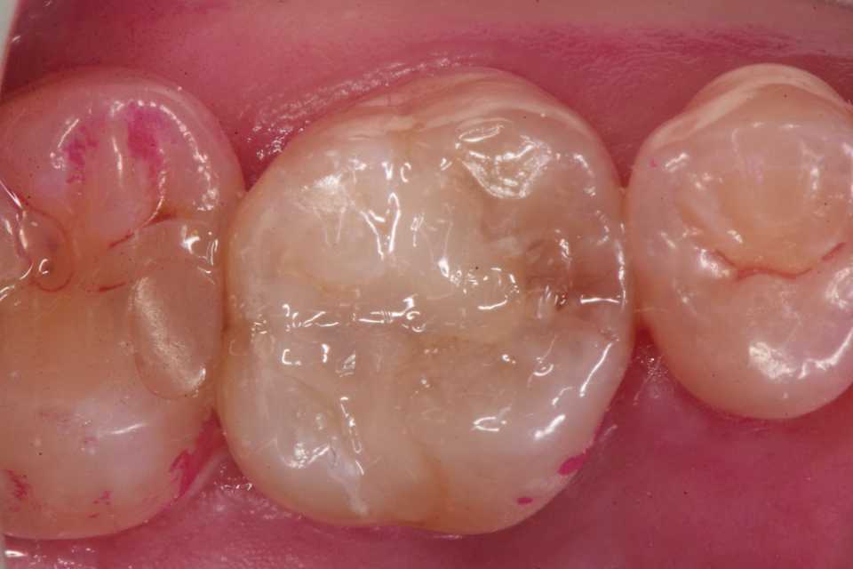 50代男性、右下7、インレー脱離今日も疲れたので、簡単な症例で。こういう咬合面だけのCR:ダイレクトボンディングは難しくないので、どこの歯科医院でもやっていると思う。必要もないのに黒い点や筋(着色)を虫歯と言い張って削って埋めるときにもやっていると思います。before2次カリエスやセメントが残っています。on the way綺麗にします。after虫歯がないのでα-TCPは使っていません。CR充填だけです。