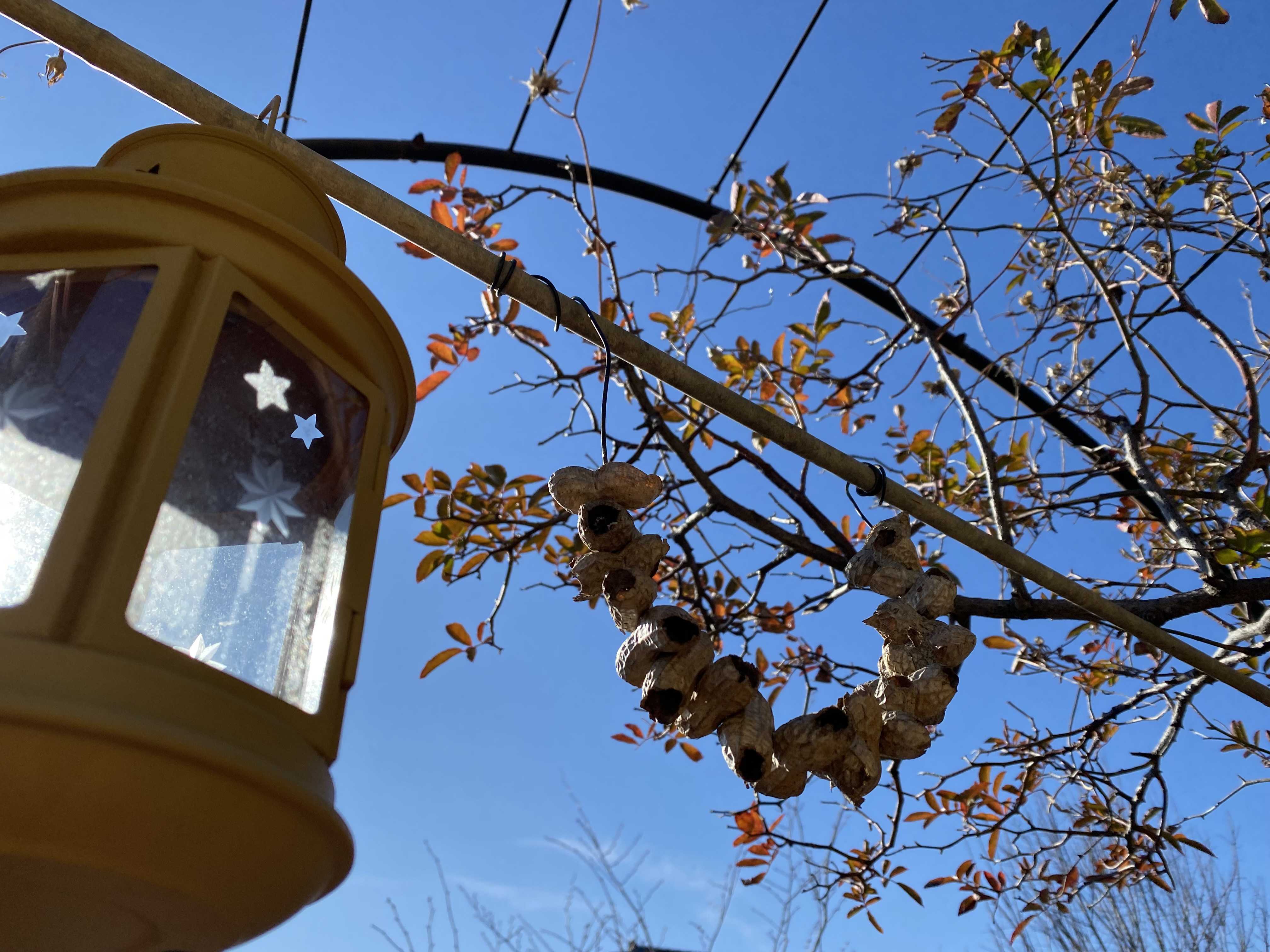 去年の空っぽのピーナッツリースが、そのまま。寂しげに、空中で揺れています、空っぽになるまで、食べてくれたんだものね。今年は、ピーナッツ好きなシジュウカラや、セグロセキレイを、全く見かけないので、何か異変があって、どこかに行ってしまったかと心配。私の庭に魅力が無くなったとか?無駄になるかも知れないけれど、殻付きがあるので、今年もリースを作ってみましょう。25個の殻付きピーナッツの両端をペンチで切り取り、真ん中には、キリで穴を開け、針金を通します。両端の穴からクチバシを突っ込んで、器用に食べます。その前に、まずは高い空から見つけてくれますように。一緒にぶら下げていたランタンは、外してみました。異物があると、用心するかもしれないので。 花ブログランキングに参加しています。 応援のクリックをよろしくお願いします。 昨日のアクセス数 5481 昨日のランキング順 4 位