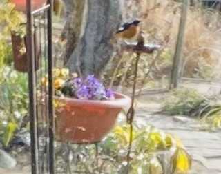 今日も庭に、ジョウビタキが来ています。活発に、目まぐるしくあちらこちらへ。小さなバードバスに、大きなヒヨドリが来て、水を飲むだけでは無く、全身に水浴びをしています。あらら、いっぺんに水が無くなりました。「ヒヨドリ水浴び禁止」の札を立てたいくらいです。そこで、急遽、大鉢用の受け皿に水を満たし、隣に、ヒヨドリ用の水場を作ってあげました。中には、足場になるように、小石を置きました。こちらがヒヨドリ用だよ、と分かってくれるかな。設置した途端に、雀が三羽やって来て、水しぶきを上げて、盛大に水浴びをしています。こんなに喜んでくれるとはね!午後は、お茶飲みのお客さんが来る予定。おしゃべりしながら、居間から野鳥観察しましょう。 花ブログランキングに参加しています。 応援のクリックをよろしくお願いします。 昨日のアクセス数 5445 昨日のランキング順 5 位