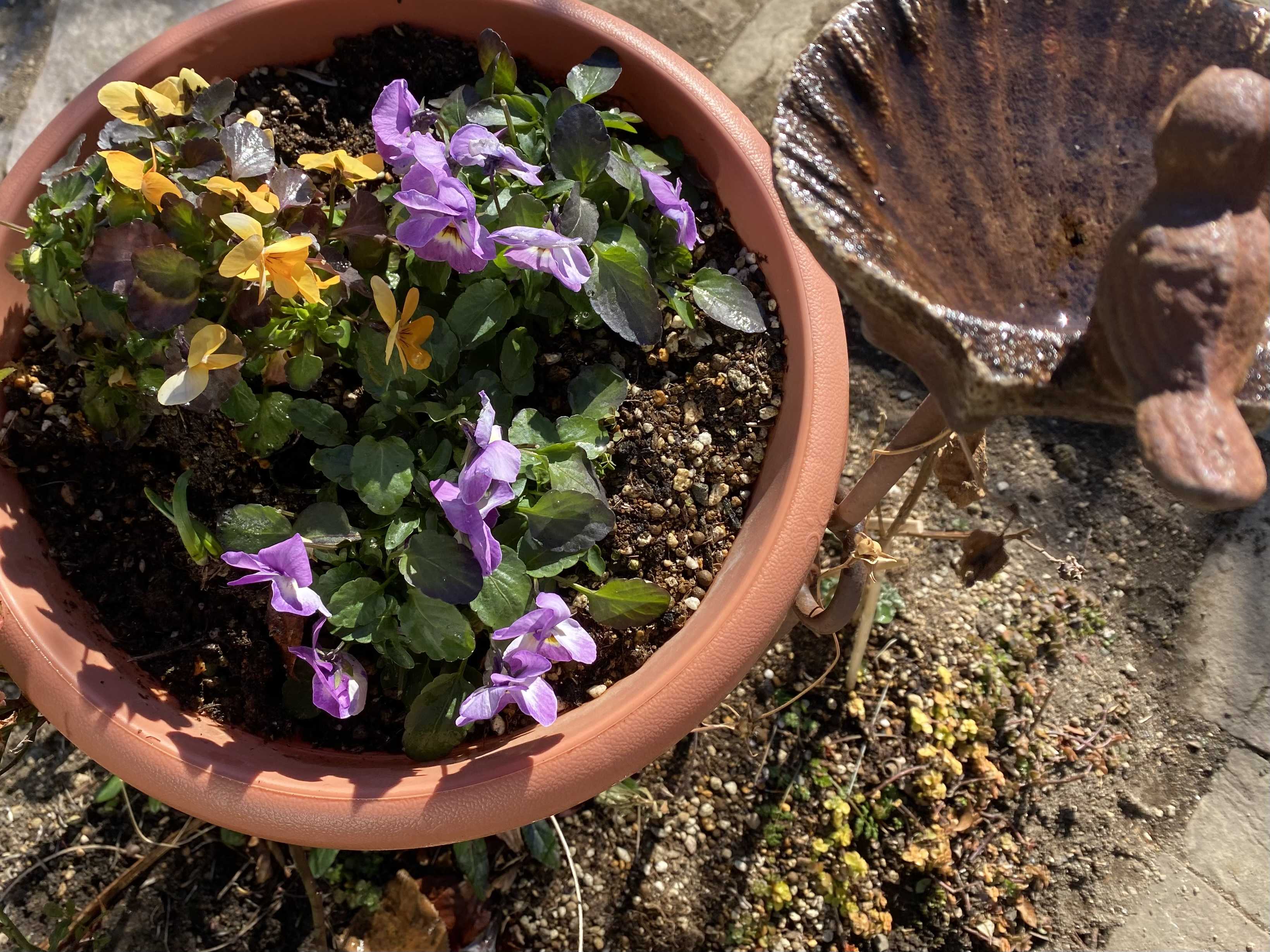 鉢植えビオラと、バードバス。ビオラの隙間には、球根が埋まっています。お日様は、燦々と射していますが、じつに寒い!今日から息子が来て、人が増えていきます。電車で来るので、娘が最寄り駅へ迎えに行きます。1日、2日は、孫も泊まる、とか。お正月料理の他に、いつもの油淋鶏が食べたい、と。今日から5日までのメニューを書き出して、お節を含めて、材料の買い出しをしましょう。一日では、買い切れない量になりそう。生協のチラシと一緒に来る小雑誌のクイズに、答えを、スマホ投稿。クイズの答のほかに、テーマに沿った一文を書くのが、決まりです。テーマは、「雑煮」。一月号に採用されました。(笑)お礼は、500円の図書券が送られてきましたよ。(笑) 花ブログランキングに参加しています。 応援のクリックをよろしくお願いします。 昨日のアクセス数 1584 昨日のランキング順 6 位