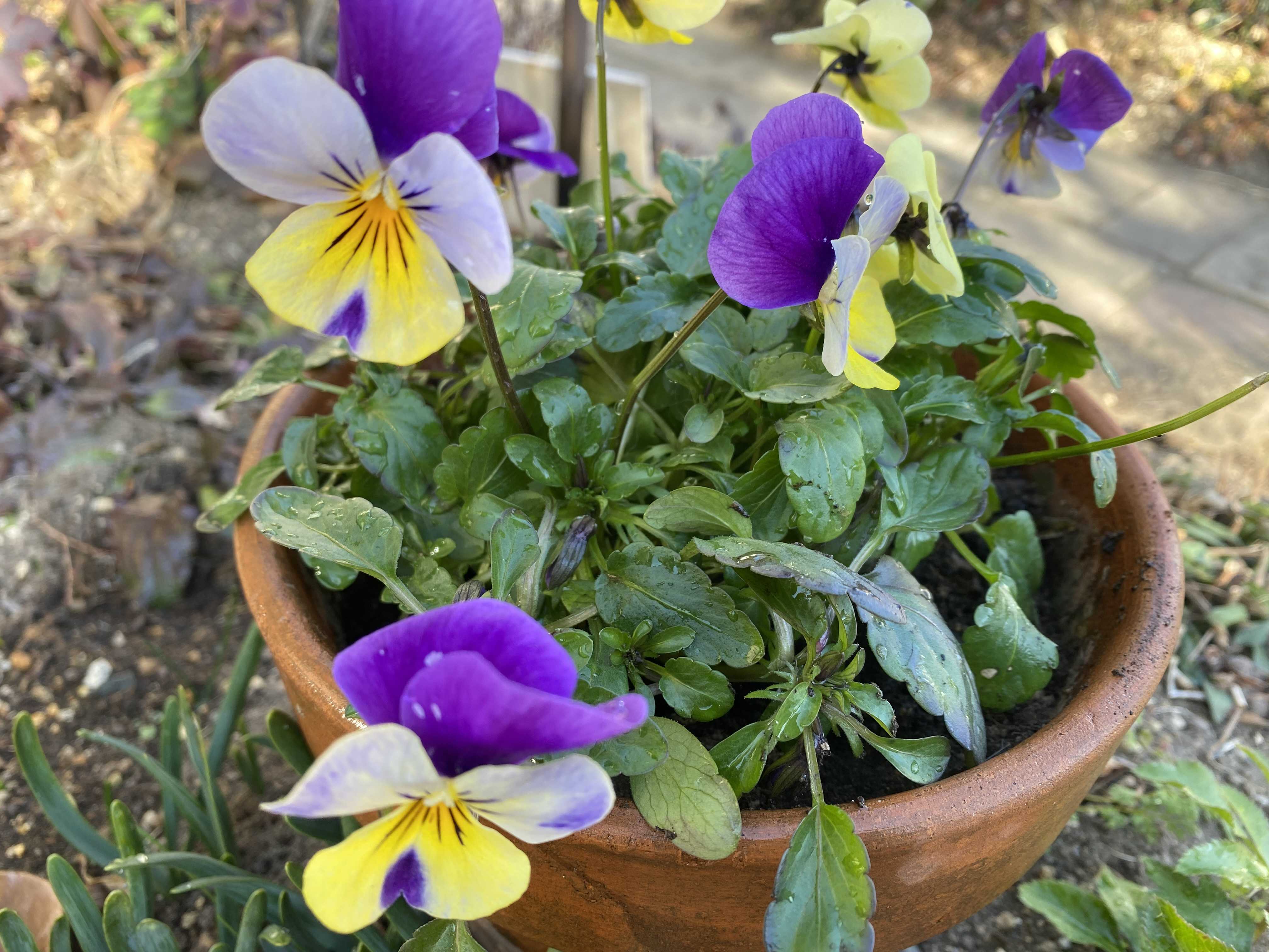 鉢植えのビオラが陽射しの中で、気持ち良さそう。なんでもかんでも地植えの私の庭ですが、冬ばかりは仕方なく、幾つかの鉢に、ビオラを植え、助けてもらっています。安価な、見切り品ばかりですが。(笑)液肥をあげているので、そのうちモリモリになるかな。梅ヶ枝餅を頂きました。大好きなので、嬉しい。冷凍なので、レンジでチンしてから、トーストします。こんがり焼けて、さっぱりアンコの美味しいこと!お二人のお客さま、お直し三点お預かりしました。来るものは拒まず、がんばりましょう。 花ブログランキングに参加しています。 応援のクリックをよろしくお願いします。 昨日のアクセス数 2307 昨日のランキング順 4 位